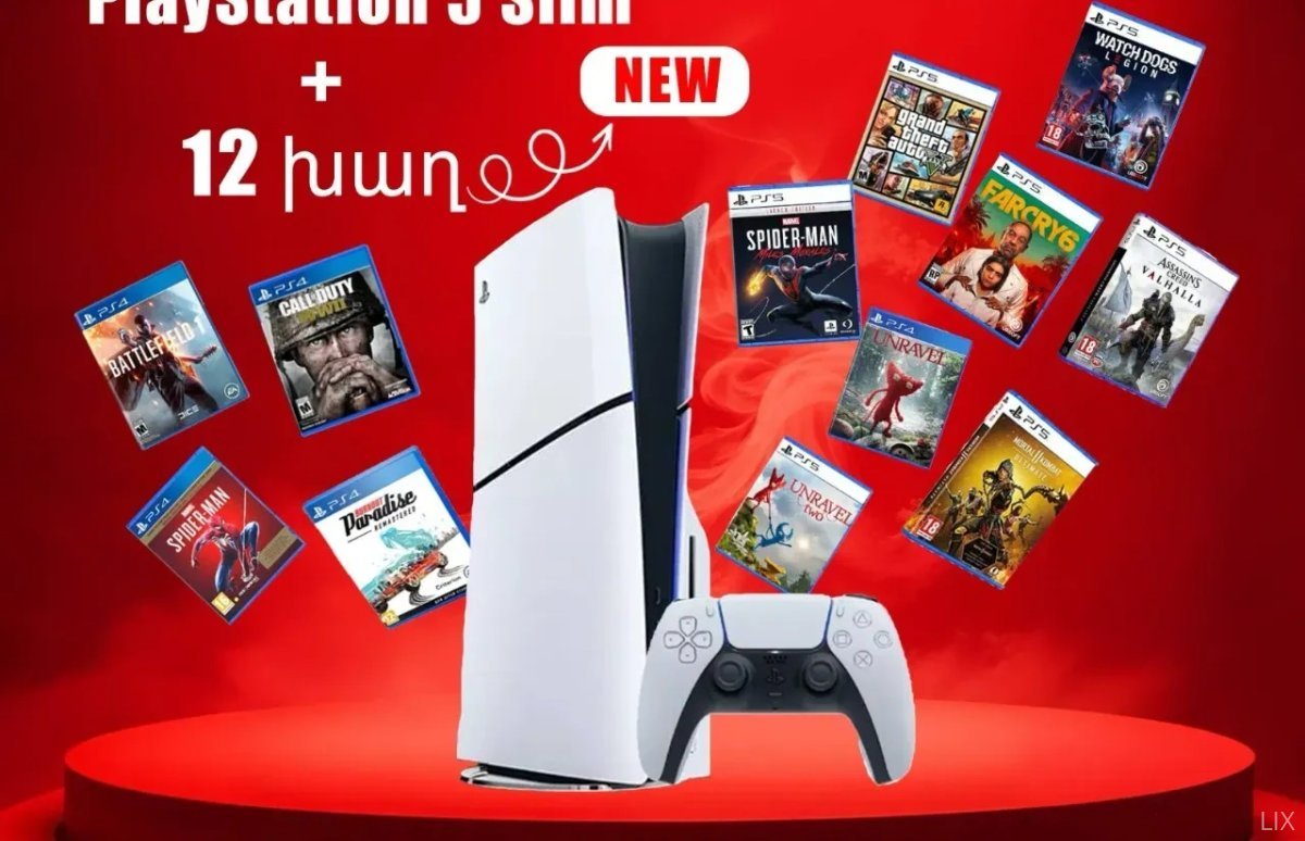 PS5 Slim Դիսկավոդով (Փակ Տուփ) 1TB PS5 1 տարի երաշխիք + 12 խաղ խաղերին տրվում է անժամկետ երաշխիք