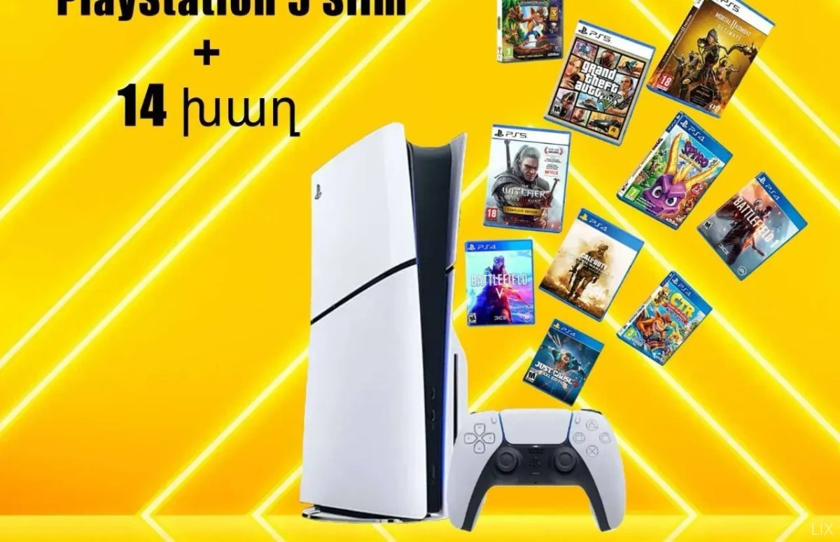Sony Playstation 5 Slim Եվրոպական Դիսկավոդով 1TB PS5 1 տարի երաշխիք + 14 խաղ խաղերին տրվում է անժամկետ երաշխիք PLAYSTATION5 PLAYSTATION4 Լրիվ նոր, փակ տուփ, բացվում է ձեր ներկայությամբ և տեղում խաղերը ներբեռնվում Խաղերը երաշխիքավորված են՝ առանց ժամկետային սահմանափակման որոնք են 1. GTA5 2. MORTAL KOMBAT 11 ULTIMATE 3. CALL OF DUTY WW II 4. THE WITCHER 3 5. BATTLEFIELD 5 6. CRASH TEAM RACING 7. SPAYRO 1 + 2 + 3 8. CRASH BANDICOOT 1 + 2 + 3 9. JUST CAUSE 3 XXL EDITION 10. BATTLEFIELD HARDLINE 11. MAFIA 1 REMASTERED DEFINITIVE EDITION 12. MAFIA 2 REMASTERED DEFINITIVE EDITION 13. MAFIA3 REMASTERED DEFINITIVE EDITION 14. BATTLEFIELD 1 Օրիգինալ և լիցենզավորված: Ապառիկ և կանխիկ վաճառք: Միշտ մատչելի գներ և բարձր որակ: Առկա են տարբերակներ՝ Digital (առանց դիսկի) Blu-Ray (դիսկով տարբերակ) Տեսականին մշտապես թարմացվում է: Ավելի քան 20 տարվա փորձով մենք առաջարկում ենք լավագույն խաղերը և խաղային համակարգերը: Մեզ հետ խաղը միշտ ավելի հետաքրքիր է՝ որակ, վստահություն և փորձառություն մեկ վայրում: Միացե՛ք մեզ և վայելե՛ք խաղերի աշխարհը լիարժեքորեն: