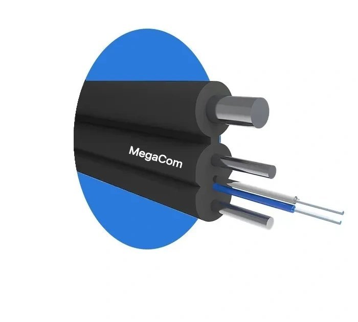 2 Core FTTH OUTDOOR DROP CABLE MegaCom 1.2 cores G657A1 1.0mm steel wire messenger 2*0.45mm steel wire strength member