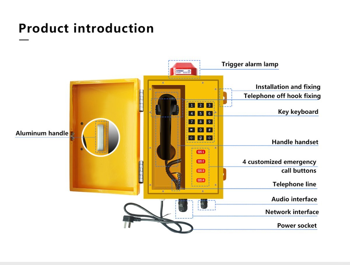 The industrial-grade communication terminal SIP- T880 telephone shell is made of metal material, and the handle is made of PC and ABS synthetic material, which has good gap sealing performance and is durable; the SIP-T880 telephone set has the characteristics of full integration, high reliability and high protection. The unique design of the U-shaped groove is used to fix the handset off-hook, and the phone also has the functions of moisture-proof, dust-proof and explosion-proof. The common uses of SIP-T880 telephones are such as high-speed rail, subway tunnels, bridges, ports, and docks, airport underground piping systems, dispatching and calling sites for large-scale industrial and mining projects, power plants, large-scale chemical plants, cement plants, steel plants, chemical plants, metallurgical plants, textile plants , power plants, military factories, oil rig refineries, ship mooring decks, country parks, national nature reserves, etc. The telephone communication function adopts the international SIP protocol standard, which can be effectively combined with the traditional telephone through the switching equipment.