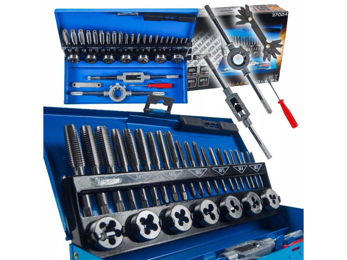 ռեզբա կտրելու սեթ M3–M12, նաբոր մետչիկով ի պլաշեկ, թելի վերականգնման հավաքածու, ռեզբանիկ գործիքների կոմպլեկտ