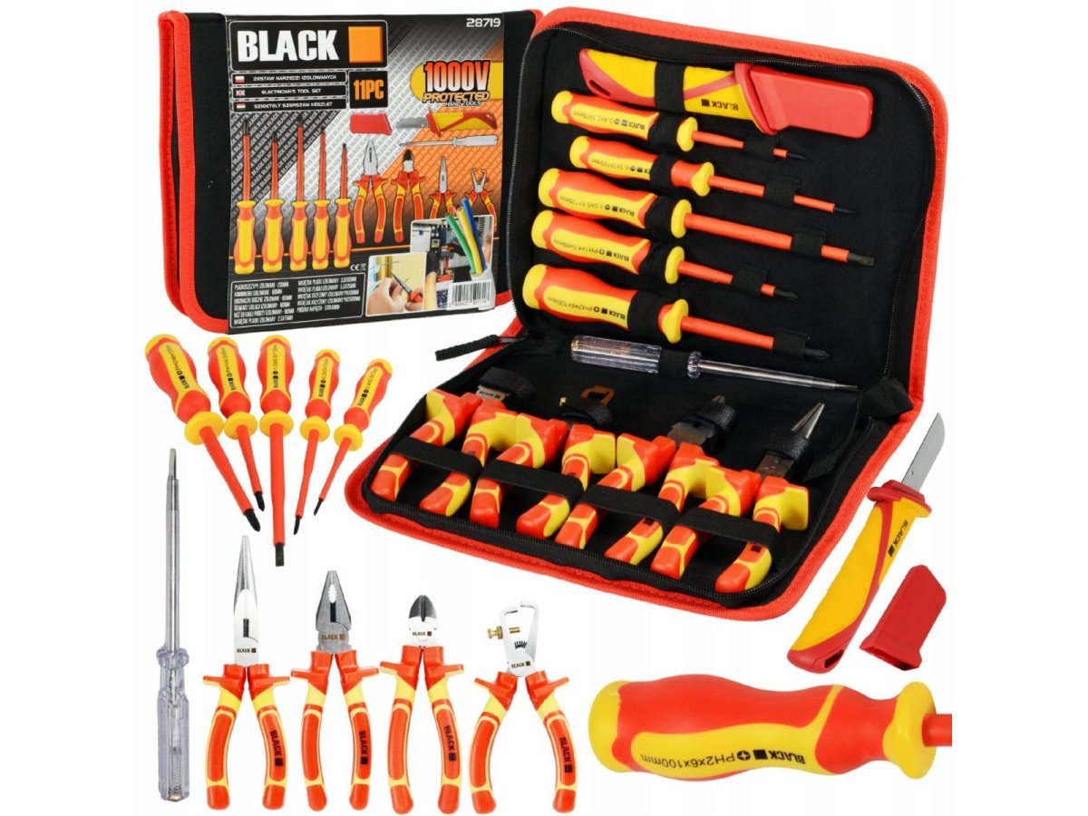 Набор инструментов и отверток для электрика, изолированные 1000V, 11 предметов, BLACK