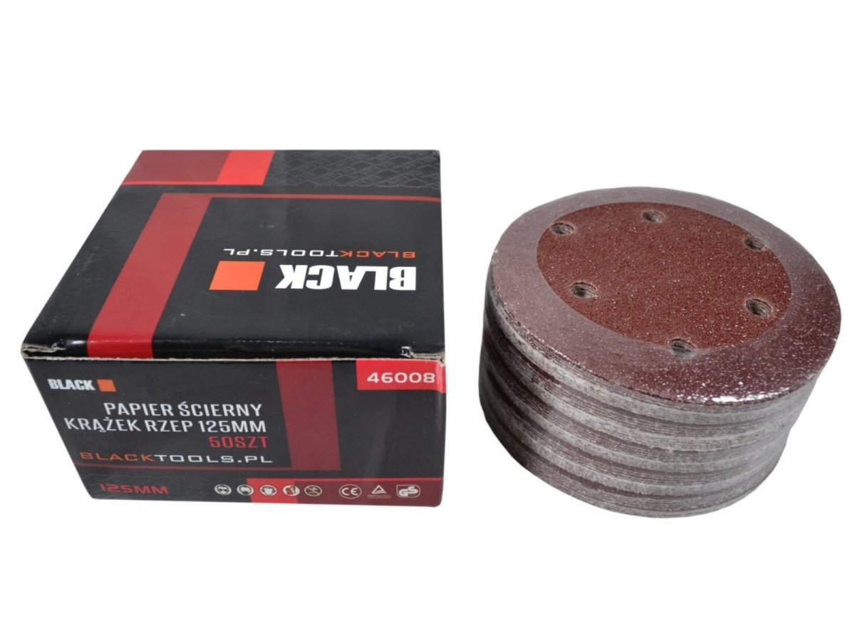 Հղկաթղթե սկավառակներ անցքերով և կպչուն հիմքով, 50 հատ։ Նախատեսված են փայտի, պլաստմասսայի, շպակլյովկայի, ներկերի և լաքերի հղկման համար։ Համապատասխանում են Ø125 մմ հղկող պլատֆորմներին, անցքերը օգնում են արդյունավետ փոշու հեռացմանը, իսկ կպչուն հիմքը ապահովում է արագ տեղադրում և հուսալի պահում աշխատանքի ընթացքում։ Հասանելի է սկավառակների P40/P60/P80 հատիկայնությունը։ Ապրանքը նոր է, չօգտագործված, գործարանային փաթեթավորմամբ, հավաքածուում՝ 50 հատ։